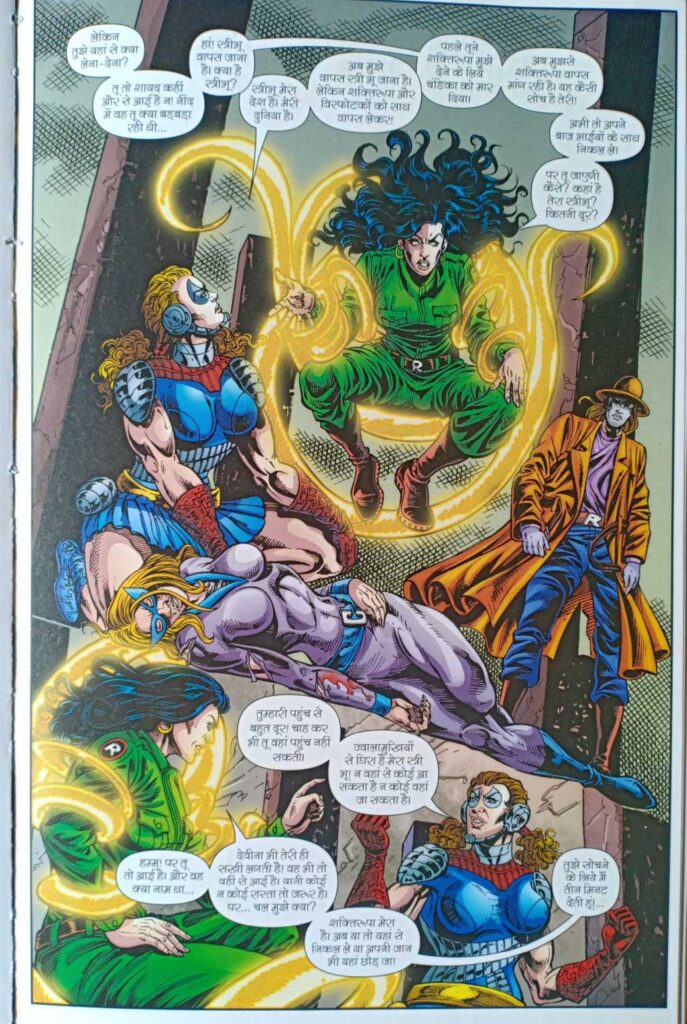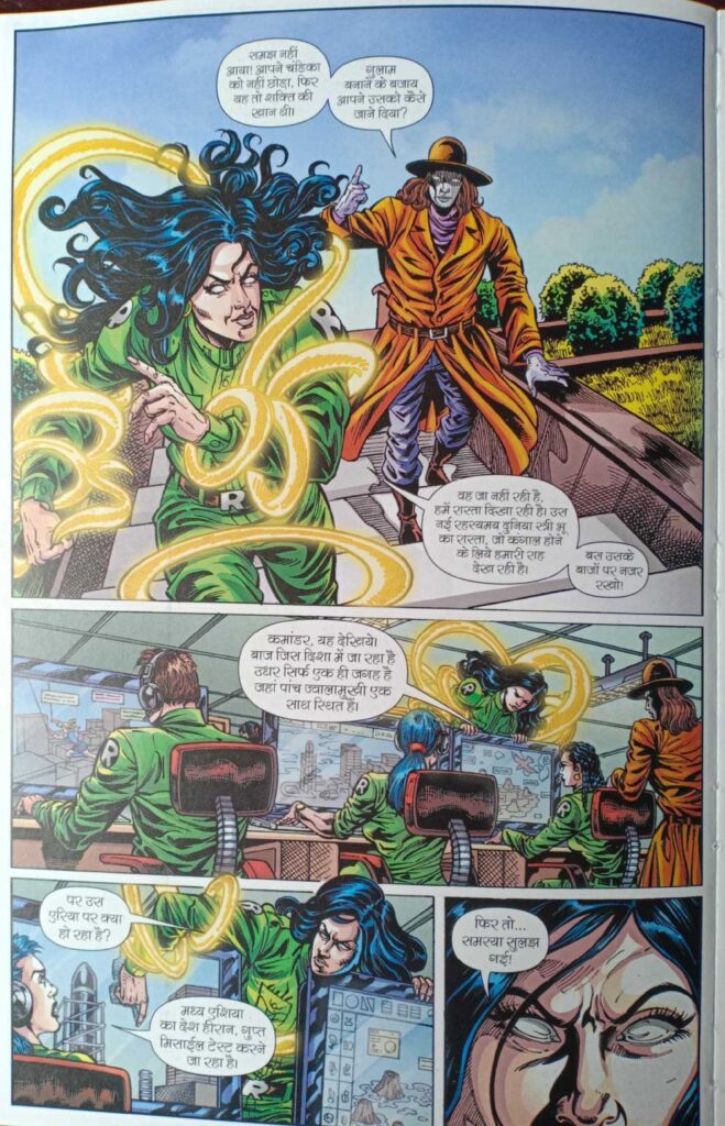 Shweta (Dhruv’s sister) plays the bravest and most surprising role in this comic. The one whom everyone thought was dead was actually roaming with Natasha in the form of ‘Victor’, her most trusted man. This undercover mission of Shweta ultimately leads to Natasha’s destruction.