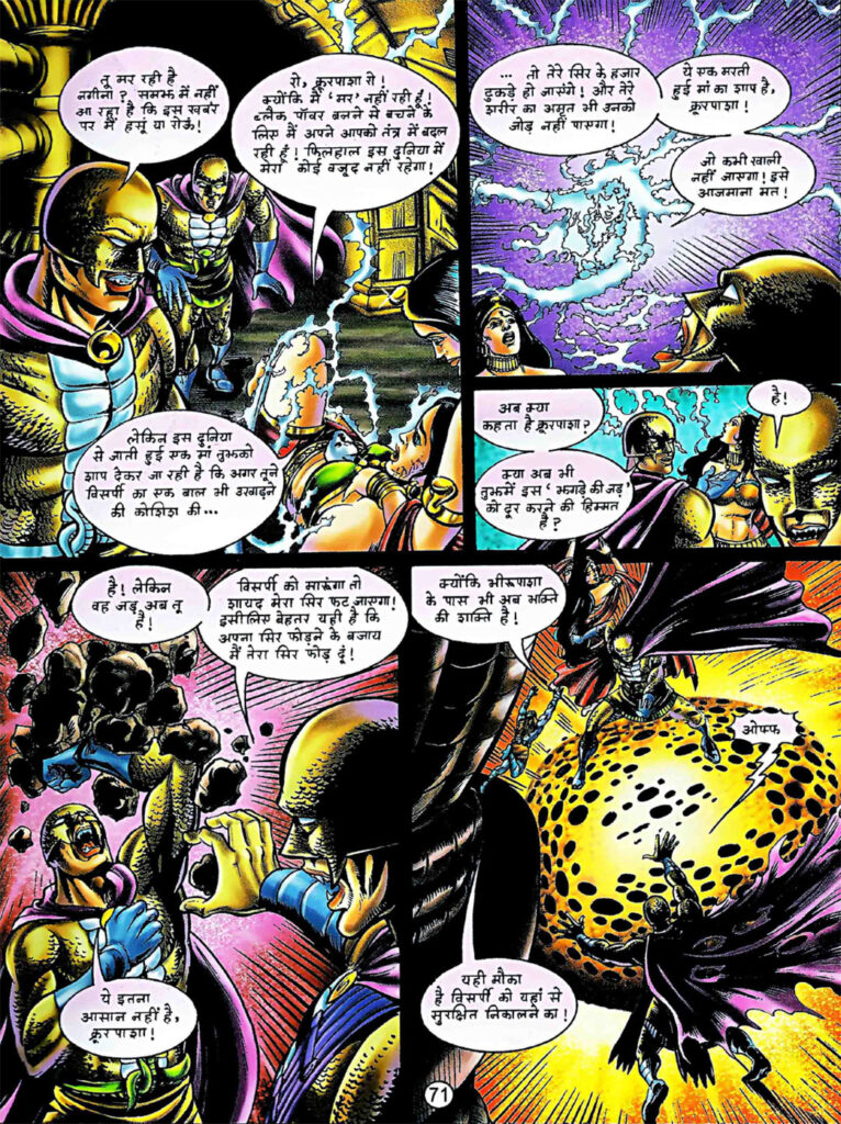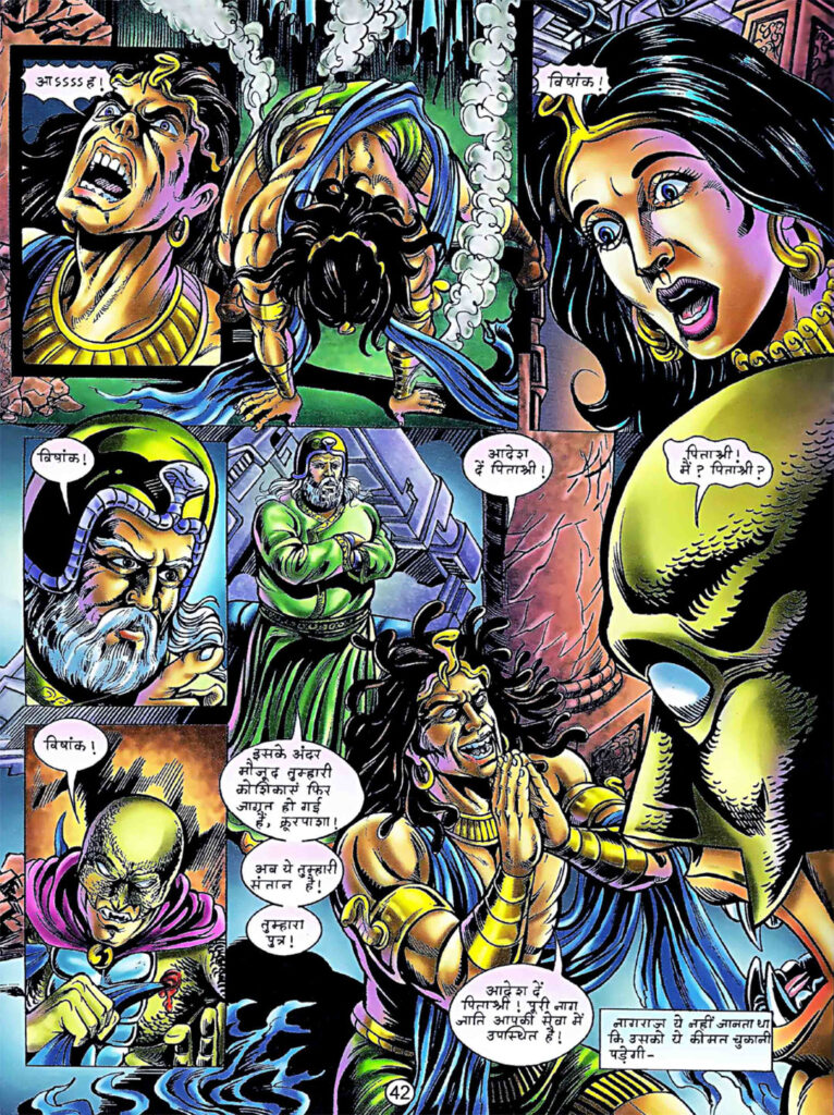 इस भाग में नागराज का चित्रण पूरी तरह एक त्रासदी की तरह सामने आता है। जो नायक पूरी दुनिया को बचाने के लिए निकला था, वही अब बुराई का हथियार बन चुका है। उसकी वह चीख— “जय सम्राट क्रूरपाशा!”— किसी भी नागराज प्रशंसक का दिल तोड़ सकती है। अनुपम सिन्हा ने नागराज के अंदर चल रहे मानसिक संघर्ष को उसके चेहरे के भावों और शरीर की बनावट के ज़रिए बेहद प्रभावी ढंग से दिखाया है।