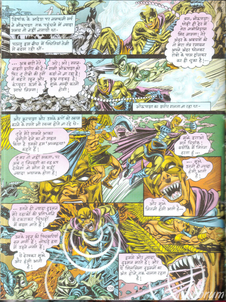 खास तौर पर भारती के बलिदान वाले दृश्यों में पात्रों के चेहरे के भाव इतने सजीव और भावुक हैं कि वे किसी फिल्मी सीन की तरह आँखों के सामने जीवंत हो उठते हैं। इसके साथ ही सुनील कुमार पाण्डेय और उनकी टीम का रंग संयोजन ‘डार्क वर्ल्ड’ और ‘श्वेत शक्तियों’ के बीच का फर्क इतनी खूबसूरती से दिखाता है कि यह पूरी कॉमिक एक अविस्मरणीय दृश्य अनुभव बन जाती है।
