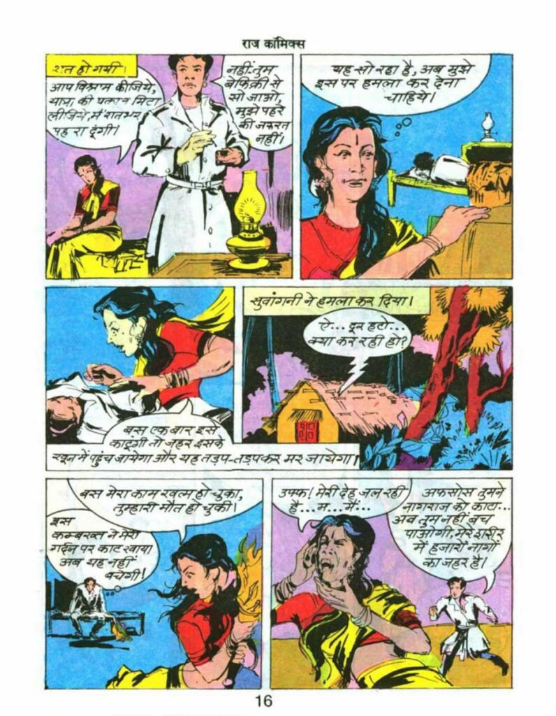 जब सुवांगिनी नागराज को काटती है, तो नागराज के जहरीले खून का असर उल्टा उसी पर पड़ता है और वह तड़प-तड़प कर मर जाती है। यह दृश्य नागराज की खास शारीरिक क्षमता को दिखाता है और पाठकों को रोमांचित कर देता है। यहाँ नागराज का संवाद—”मेरे शरीर में हजारों नागों का जहर है”—काफी दमदार और यादगार बन जाता है।