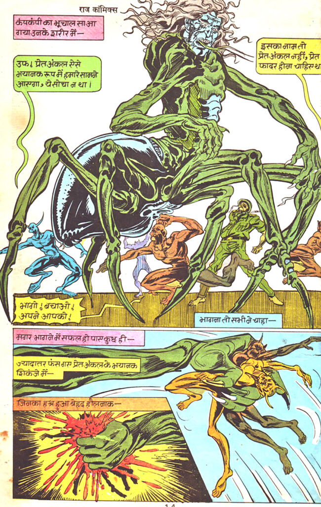To deal with the terror of these “phantom robbers”, our hero Pret Uncle arrives. Pret Uncle, himself a spirit, has the ability to fight these evil spirits. In the story, Pret Uncle encounters not only these ghost robbers but also other terrible creatures created by their master, such as a giant spider-like monster.