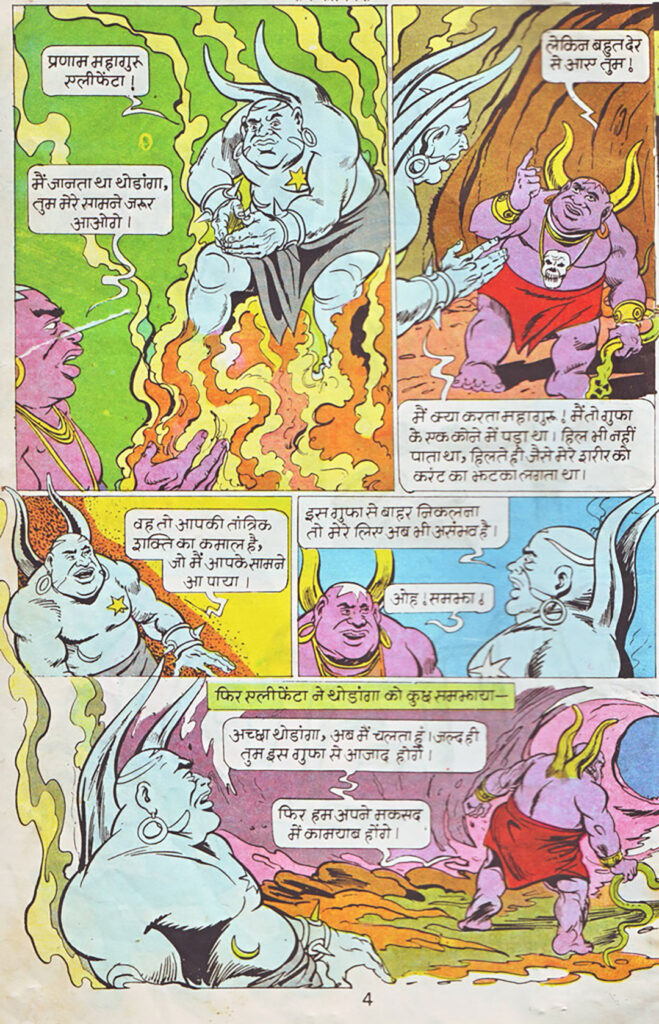 The story begins with a dialogue between Elephanta, a mysterious occultist, and Thodanga, a powerful, horned demon. Elephanta partially frees Thodanga from a magical prison with his tantric powers. Thodanga, who was unable to move, expresses his gratitude to Elephanta. Their dialogue makes it clear that both of them have come together for some big and evil purpose. This beginning immediately creates curiosity in the reader’s mind as to who these two are and what their purpose is.