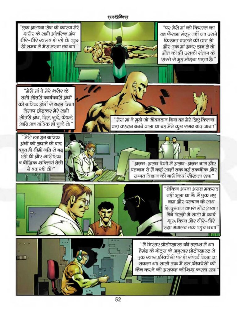 कहानी का अंत किसी भव्य हॉलीवुड साइंस-फिक्शन फिल्म जैसा महसूस होता है। ध्रुव प्रोटोप्लास्टा को उसके ‘डिफ़ॉल्ट’ शरीर—एक चमगादड़ मानव जैसे रूप—में लौटने के लिए मजबूर कर देता है, और ठीक उसी वक्त श्वेता सही समय पर ‘चिप’ इंसर्ट करके उस जानलेवा वायरस को पूरी तरह खत्म कर देती है।