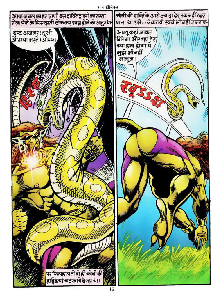 The second greatest strength of his writing is the excellent ‘pacing’. The plot of the comic doesn’t relax anywhere; from planning to the tactics of tiring the main villain Kobi, and then to the final decisive battle, this pace keeps the reader’s curiosity and interest tied till the end.