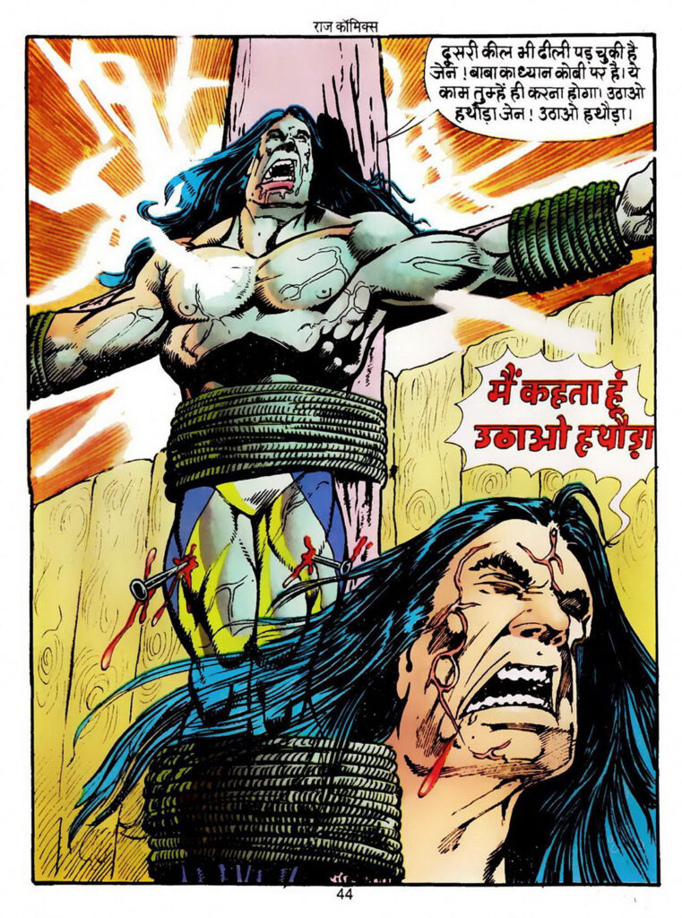 Kobi: The real hero of “Saleeb” is Kobi. He is a ‘Tragic Hero’. He is powerful, arrogant, but here he is a victim of destiny. He doesn’t understand why his own people are against him. His anger, his sense of betrayal, his suffering on the cross, and finally his transformation into a protector — this entire journey makes him one of the most complex characters in Raj Comics.