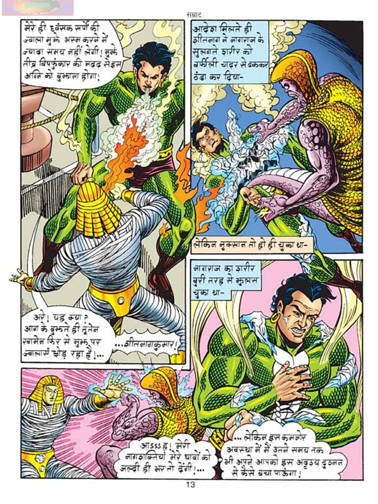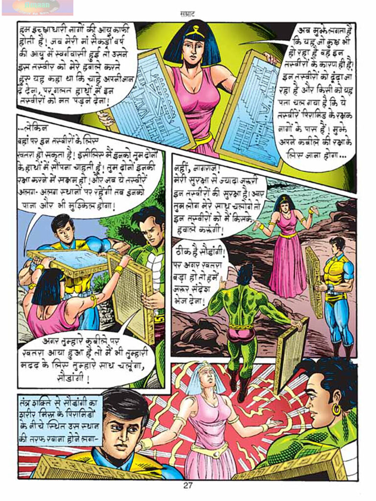 कहानी साफ-साफ ‘सम्राट’ शीर्षक के इर्द-गिर्द घूमती है। इसका मतलब है कि अंत में नायकों को केवल तूतेन खामेन और उसकी ममी सेना को हराना नहीं है, बल्कि करणवशी को क्लियोपेट्रा की राजदंड की शक्ति हासिल करने से रोकना भी है, ताकि वह दुनिया का निरंकुश शासक न बन पाए। तूतेन खामेन का मुखौटा, जो नागराज की शक्तियों की नकल करता है, एक बेहतरीन प्लॉट डिवाइस है, जो नायकों को अपनी पुरानी रणनीतियों से हटकर सोचना मजबूर करता है और एक्शन को और रोमांचक बनाता है।