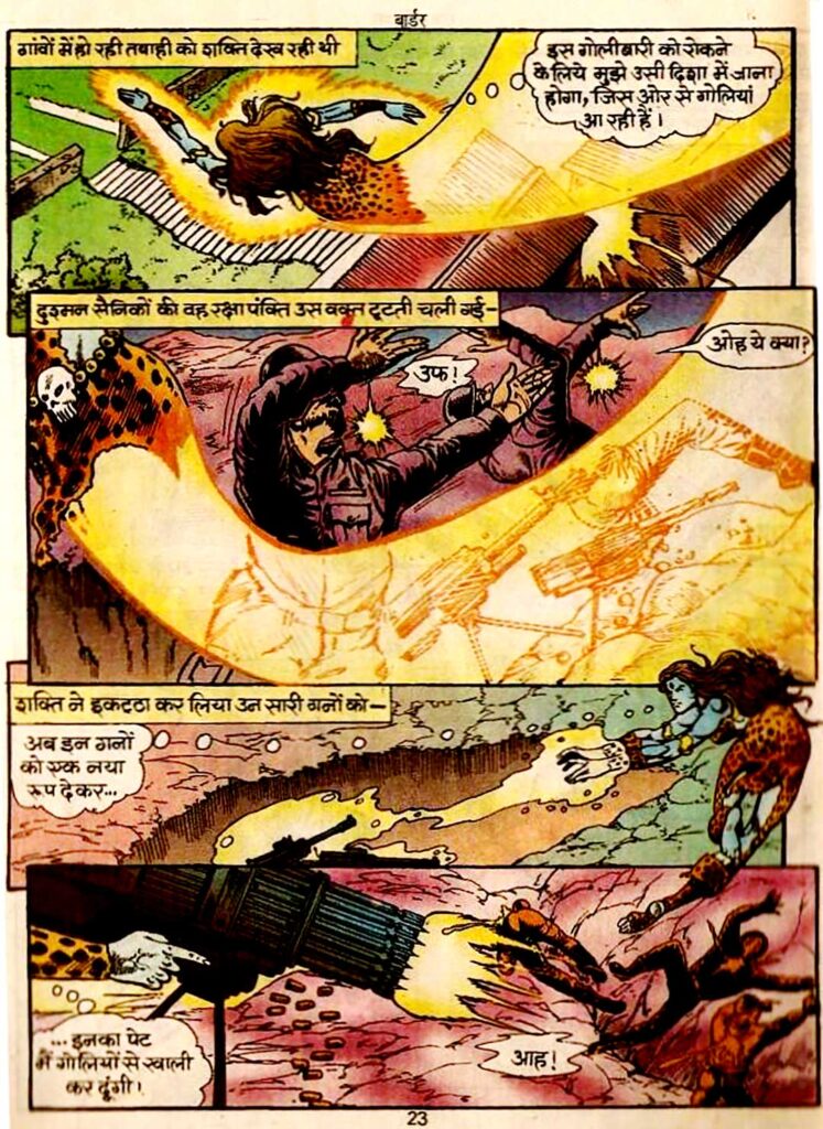Shakti is considered a part of Goddess Chandi, who has descended on earth to eliminate injustice and evil. The comic ‘Border’ (issue No. 988) is the story of a period when the situation on the border is extremely tense. This story is not just a superhero “power” fight, but also the story of doctors, soldiers, and innocent common people who get burned without any fault of their own in the fire of war.