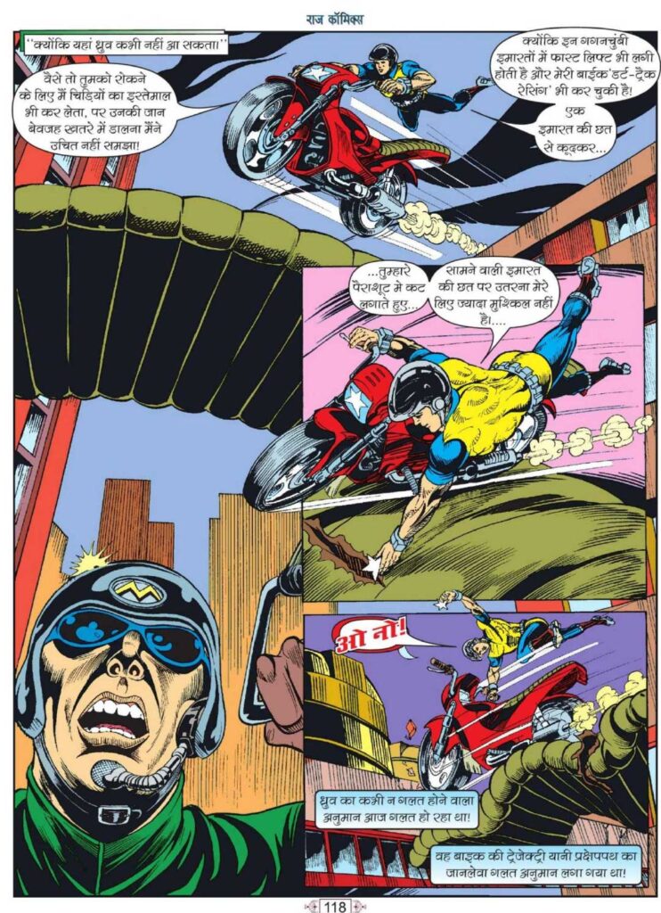 वहीं ध्रुव द्वारा हजारों पक्षियों को बुलाने वाला दृश्य राज कॉमिक्स के इतिहास के सबसे यादगार पलों में गिना जा सकता है। आसमान का पक्षियों से भर जाना और पंखों की जबरदस्त फड़फड़ाहट अनुपम जी की कूची का असली जादू दिखाती है।