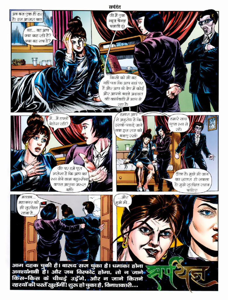 Nagraj: In this comic, Nagraj is shown in a weak condition due to illness, which makes him more human. He does not want a fight, but is forced into self-defense and truth. This compulsion brings readers closer to him.