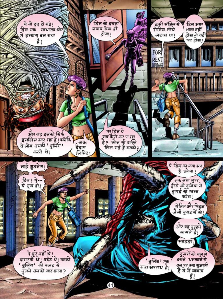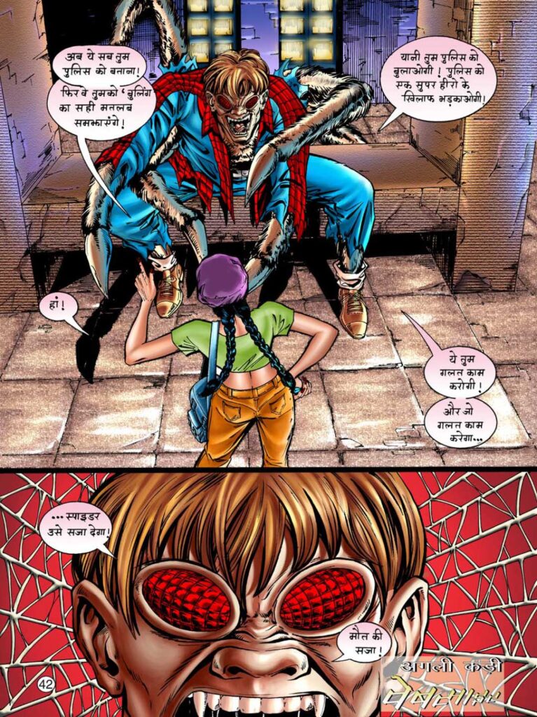 Shweta slowly starts realizing that there is some big secret hidden behind Din. She tries to know the truth. But this is where the story becomes more dangerous. The comic ends with tremendous suspense, where ‘Spider’-turned-Din threatens to target Shweta herself. He clearly says that whoever comes in his way or tries to stop him will not survive.