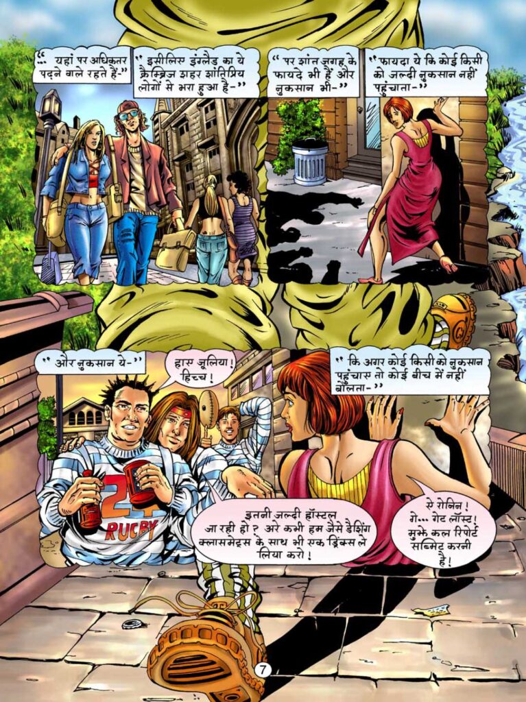 Anupam Sinha’s work in this comic again proves why he is counted among the top artists of the Indian comics world. The Gothic buildings of Cambridge, the atmosphere there, and the university setting are beautifully shown. The pace and energy in the rugby match scene feel vivid, while the suspense and tension emerge well in the scene set inside the lab.