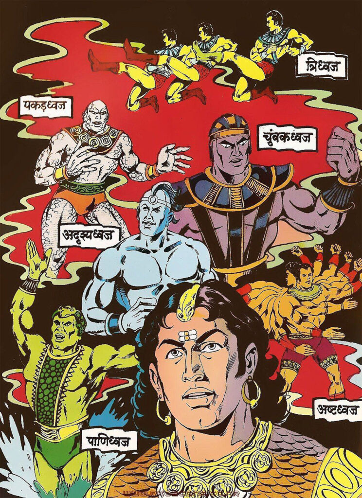 Solution: Tausi used the magnetic power of ‘Magnetflag’. He pulled the Ashtadhwaj towards himself while rotating with his power and held him in his arms. He gave up as soon as his speed stopped.