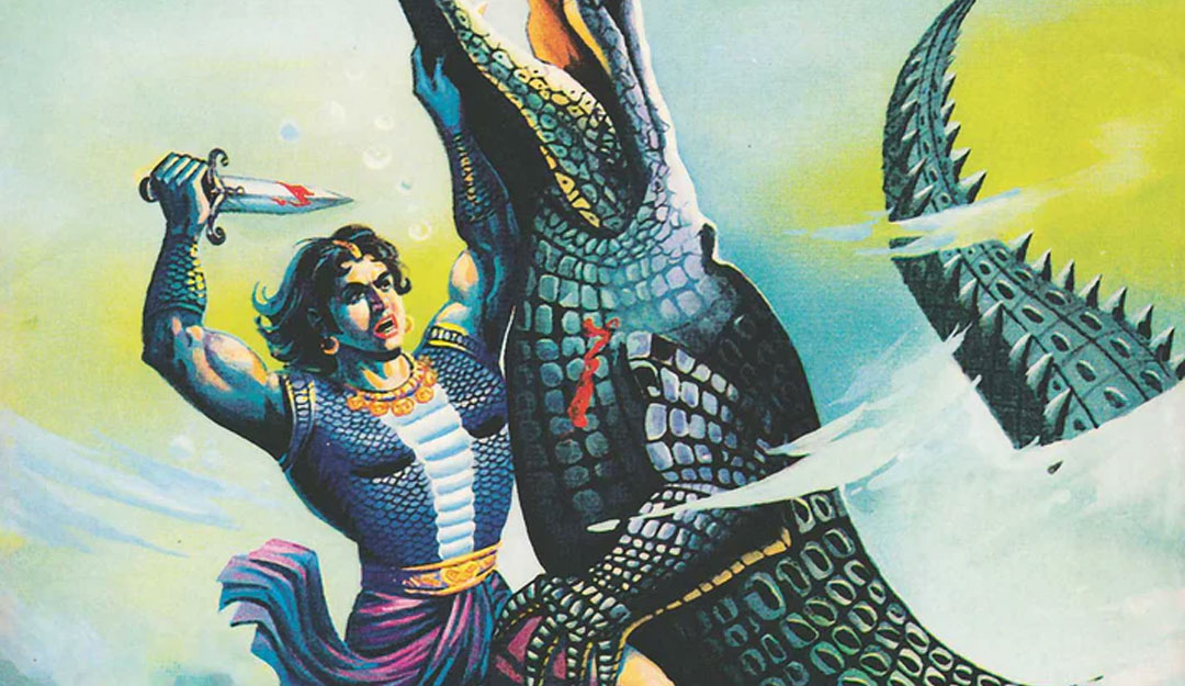 Struggle: Tausi jumps straight into the water. The crocodile i.e., Panidhwaj, is very powerful underwater. He traps Tausi by creating a large vortex in the water with a technique like ‘water churn’.