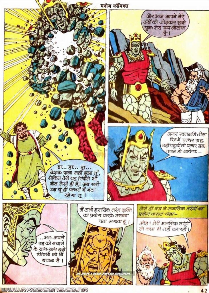 कहानी सिर्फ जादू और तपस्या तक सीमित नहीं रहती, बल्कि हमें ‘पत्थर ग्रह’ यानी Planet Tapori की यात्रा पर भी ले जाती है। असल में वज्र उसी ग्रह का राजकुमार है। उसके पिता सम्राट स्टोनो ने अपने ग्रह के सबसे बड़े वैज्ञानिक ‘पोखर’ की मदद से वज्र को अपार वैज्ञानिक शक्तियाँ प्रदान की थीं। वज्र का शरीर खास किस्म के पत्थरों से बना है, जिन्हें वैज्ञानिक तरीकों से बेहद शक्तिशाली बनाया गया है।