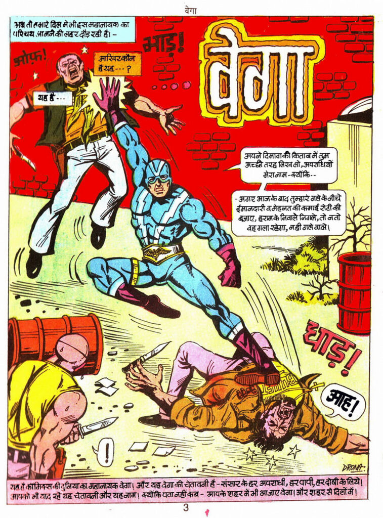वेगा: वेगा 90 के दशक के भारतीय सुपरहीरोज़ की एक शानदार मिसाल है। उसका किरदार मज़बूत, ईमानदार और निडर है। नीली पोशाक, चेहरे पर मास्क और मजबूत शरीर – वो बिल्कुल वैसा ही दिखता है जैसा एक सुपरहीरो को होना चाहिए।