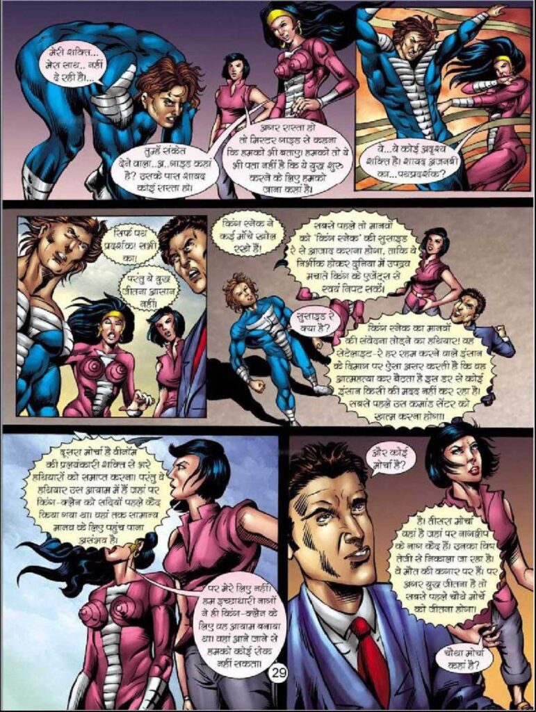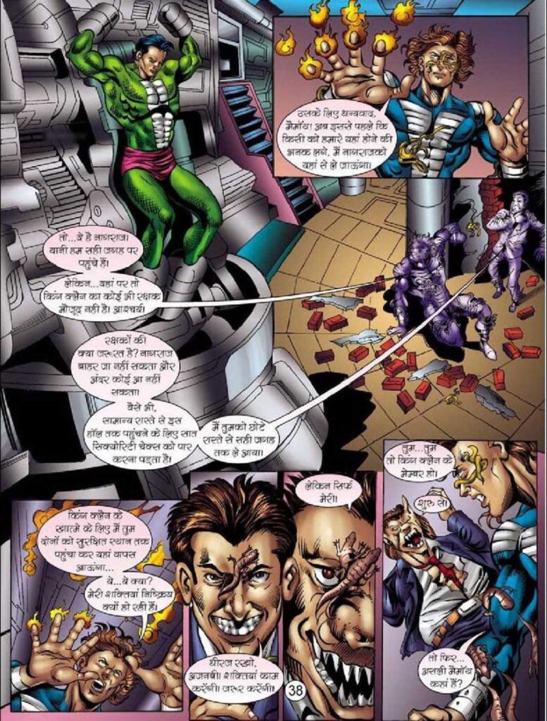 नागराज/शाह: इस भाग में नागराज एक नए रूप में सामने आता है। वह अब सिर्फ एक सुपरहीरो नहीं, बल्कि एक समझदार जासूस और कुशल योजनाकार भी दिखता है। अंत में उसका ‘शाह’ (Shah) नाम अपनाना और भारती के ऑफिस में मैनेजर बनना उसके मानवीय और रणनीतिक दोनों पहलुओं को उजागर करता है।