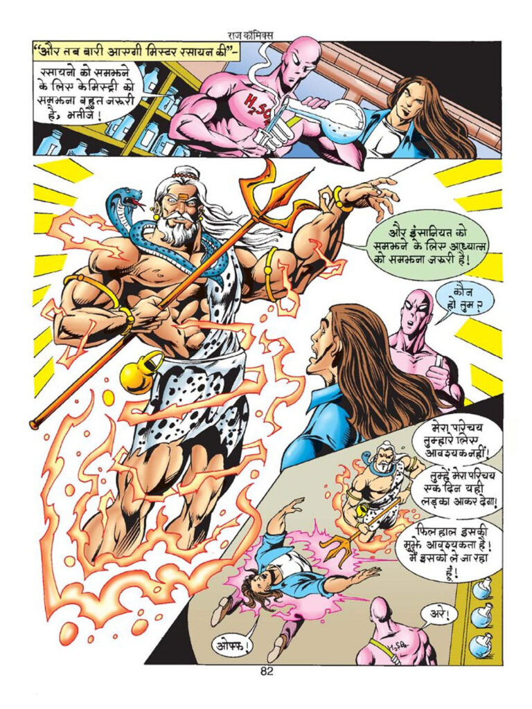 अन्य सुपरहीरो: डोगा, शक्ति, तिरंगा और परमाणु जैसे हीरो भी इस कॉमिक्स में नज़र आते हैं, जो इसे एक भव्य मल्टी-हीरो इवेंट बना देते हैं। हालाँकि, उनकी भूमिकाएँ ज़्यादातर कैमियो (छोटे रोल) तक सीमित हैं। वे कहानी के मुख्य प्लॉट में ज़्यादा दखल नहीं देते, लेकिन उनकी मौजूदगी यह एहसास ज़रूर कराती है कि ये पूरा राज कॉमिक्स यूनिवर्स का एक बड़ा और खास इवेंट है।