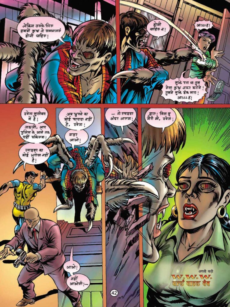 The comic ends on a tremendous cliffhanger. Spider is no longer just a local threat. The radioactive process going on inside his body is turning him into a ‘moving atomic bomb’. Now the challenge before Dhruv is not just to save Shweta, but also to save the entire city of Cambridge from a terrible explosion. ‘WWW on the last page—advertising the World Wide Web’ creates tremendous curiosity in readers for the next part. This is a great example of the marketing and storytelling art of the series.