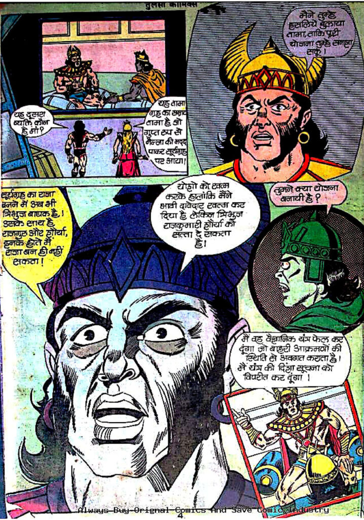 कहानी की शुरुआत अमेरिका के एक अंतरिक्ष केंद्र (Space Center) से होती है, जहाँ सर जॉनसन और माइकल आपस में बातचीत कर रहे हैं। यह सीन कहानी को ज़मीन से जोड़ता है और इसमें थोड़ा यथार्थ का एहसास भी भरता है। यहीं हमें योशो के पिता ‘योधराज’ के बारे में जानकारी मिलती है, जो पृथ्वी के पहले नागरिक थे जिन्होंने सूर्यग्रह की यात्रा की थी। यह बात साफ कर देती है कि योशो सिर्फ कोई काल्पनिक योद्धा नहीं है, बल्कि उसकी रगों में धरती का खून भी दौड़ता है। योधराज का रहस्यमय तरीके से गायब होना और फिर भारत में आकर उतरना कहानी में ऐसा सस्पेंस पैदा करता है, जो अंत तक बना रहता है।